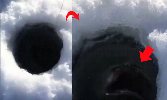 VIDEO : Iseng Mancing di Sebuah Lubang Es, Pria ini Teriak Ngeri, yang Muncul Bikin Jantung Copot