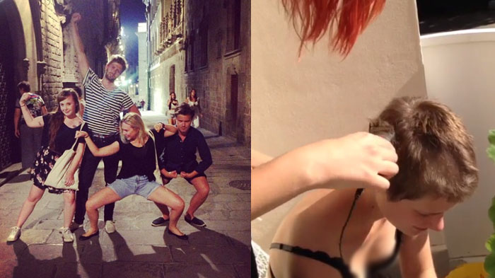 Ia juga sempat mengunggah video saat seorang teman menggunduli kepalanya.