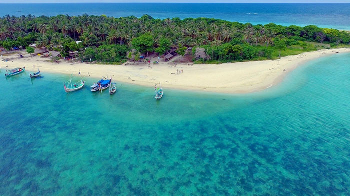Hamparan pasir yang putih dan ratusan pohon kelapa menambah kesan sejuk dan indah di pulau ini.