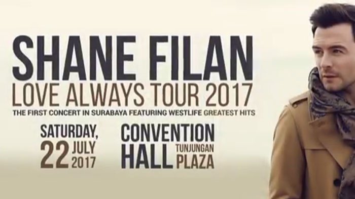 Dalam akun Instagram @shanefilanofficial, Shane Filan menggunggah video dirinya yang mengatakan akan datang ke Surabaya untuk live konser pada 22 Juni 2017.