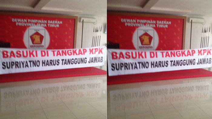 Pasca Kader Gerindra Jatim, Basuki Ditangkap KPK, Kantor Gerindra Jatim Dihebohkan Ada Spanduk Ini