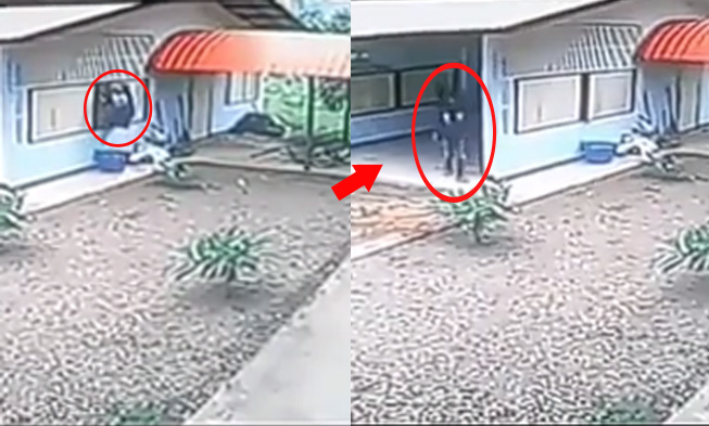 Dalam video yang ada, tampak pada detik ke-25, datang pengendara yang berboncengan mengenakan sepeda motor putih, parkir di depan gerbang.