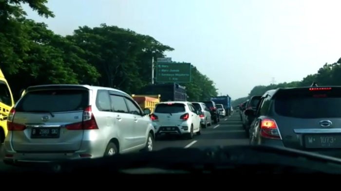 Meski begitu, masih terlihat antrean yang cukup padat di pintu tol.