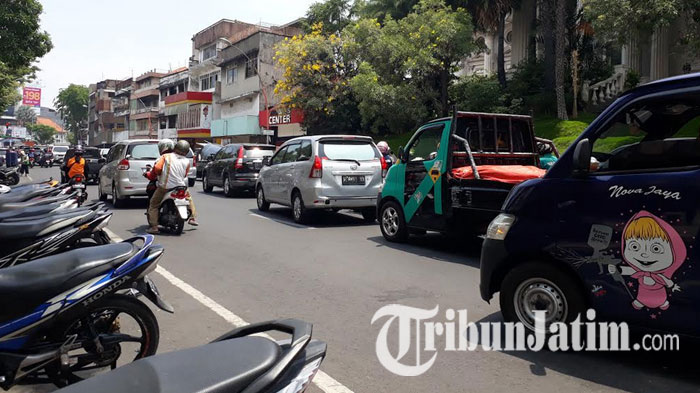Kendaraan dari arah Jalan Blauran menuju Jalan Praban dan Tunjungan mengalami perlambatan laju kendaraan.