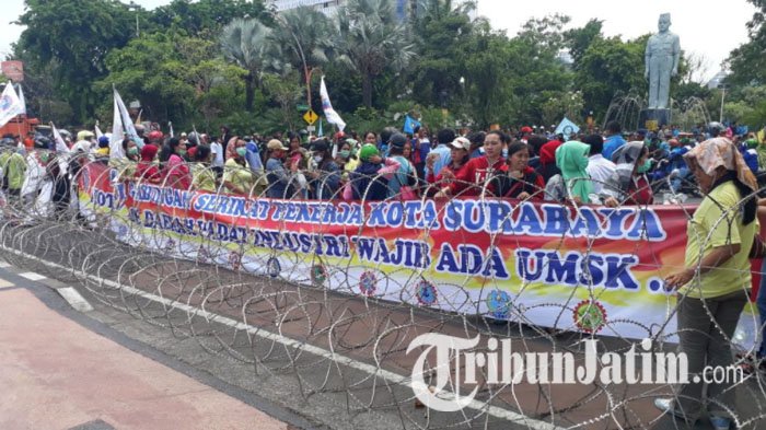 Demo ini dilakukan terkait menjelang kenaikan besaran UMP (Upah Minimum Provinsi) Jatim tahun 2018.