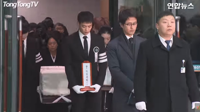 Teman-teman Jonghyun berkumpul dan mengucapkan selamat tinggal untuk terakhir kalinya di RS Asan, Seoul.