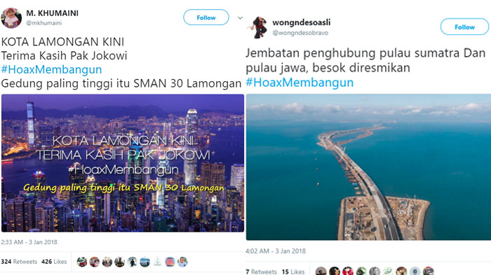 Bahkan hashtag #HoaxMembangun menjadi trending topik Twitter.