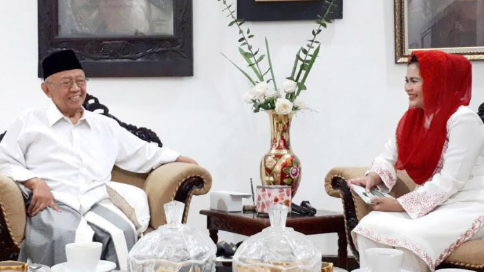 Dalam pertemuan tersebut, Puti Guntur Soekarno mengenakan busana putih yang dipadu dengan jilbab merah.