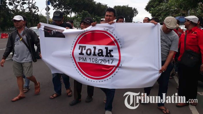 Mereka melakukan aksi menggugat terkait pemerintah yang menerapkan PM 108 tahun 2017, dan Pergub No 188/375/KPTS/103/2017.