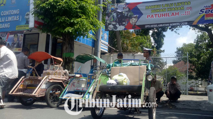 TRIBUNJATIM.COM, JOMBANG - Satlantas Polres Jombang akan mengenakan sanksi tegas terhadap becak bermotor (betor) yang nekat melintas di kawasan tertib lalulintas (KTL) kota Jombang.