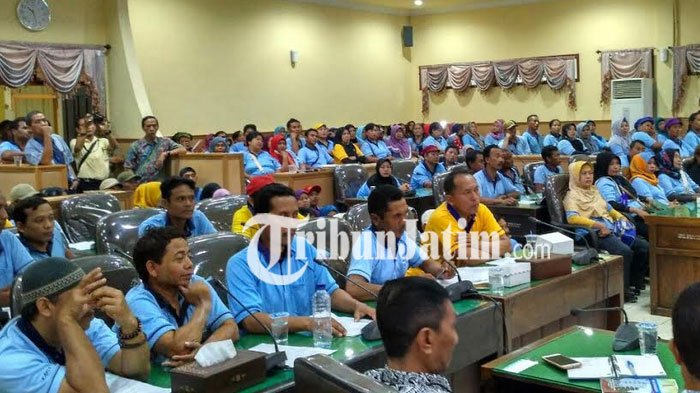 Ratusan buruh dari koperasi Kareb mendatangi gedung DPRD Kabupaten Bojonegoro, Rabu (21/3/2018), sekira pukul 09.30 WIB.