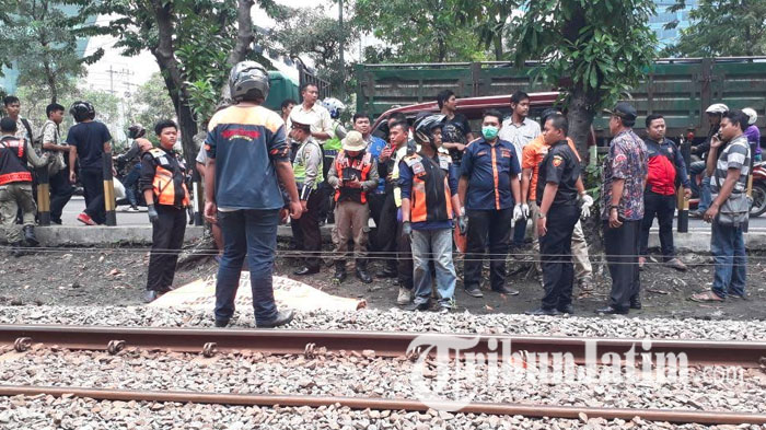 Tak sampai 24 jam, dua pria ditemukan tewas tertabrak kereta api di Jalan Ahmad Yani, Surabaya.