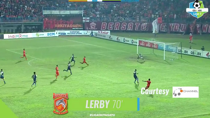 Tendangan keras Lerby tidak bisa diantisipasi oleh para pemain Arema FC sehingga terjadilah gol kedua.