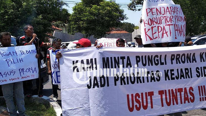 - Puluhan warga menggelar unjuk rasa di Kantor Kejaksaan Negeri (Kejari) Sidoarjo, Rabu (18/4/2018) siang.