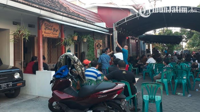 Beberapa kerabat berdatangan memberi belasungkawa, karangan bunga juga menghiasi gang rumah korban di Jalan Gubeng Kertajaya.
