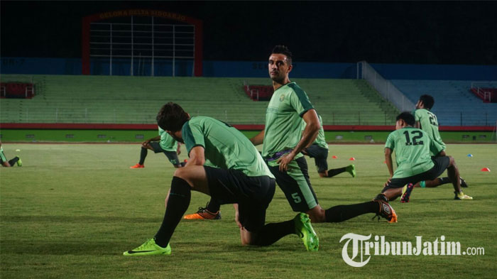 TRIBUNJATIM.COM, SURABAYA - Meski batal menggelar uji coba, Skuad Bajol Ijo menggantinya dengan latihan di Stadion Delta, Sidoarjo, Sabtu (19/5/2018).