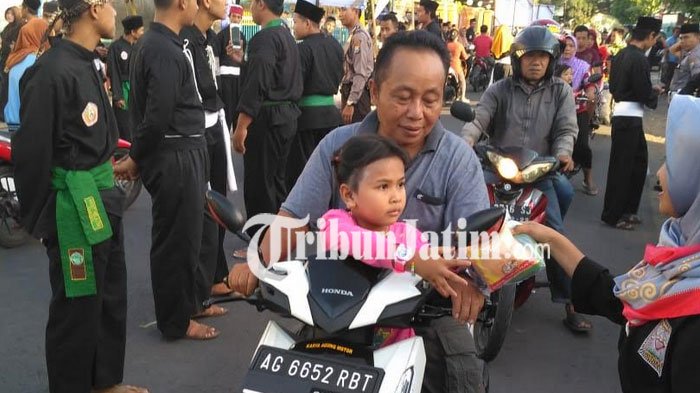 Pandangan pengguna jalan di Kecamatan Besuki Tulungagung terlihat curiga, bahkan ada yang ketakutan, saat ratusan pendekar silat