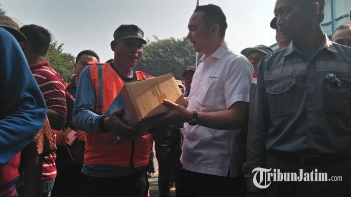 TRIBUNJATIM.COM, SURABAYA - PT Pelabuhan Indonesia III (Persero) atau Pelindo III memberikan sejumlah bantuan sembako kepada para tenaga kebersihan, tukang becak, dan masyarakat dhuafa di sekitar Pelabuhan Tanjung Perak.