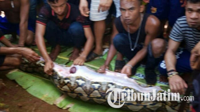 Setelah dibelah, korban ditemukan di dalam perut ular tersebut sudah tak bernyawa dalam kondisi masih menggunakan celana panjang dan kaus lengan panjang.