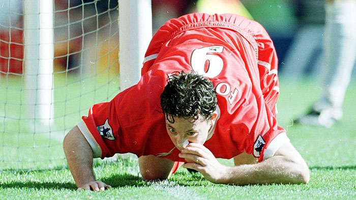 Maka tak heran, ketika akhirnya Nistelroy membobol gawang, ia melakukan tindakan yang sama.