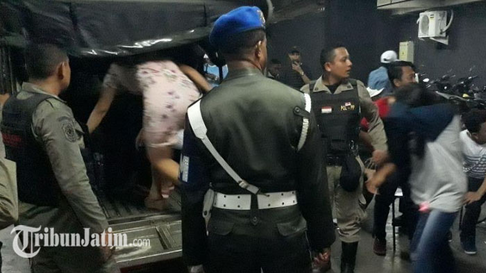 Tidak berjalan sendiri, Satpol PP di-backup Polrestabes Surabaya serta Gartap III Surabaya.