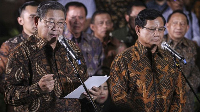Ketua Umum Partai Demokrat, Susilo Bambang Yudhoyono ( SBY) dan Ketua Umum Partai Gerindra Prabowo Subianto.