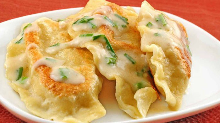 Dumpling (sejenis pangsit) dan kentang menjadi makanan pokok Polandia yang disebut Pierogi.