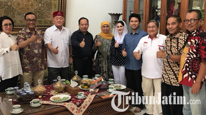 Sejumlah tokoh pengusaha tampak hadir di rumah Khofifah, salah satunya seperti tokoh pengusaha Islam Tionghoa HM Yos Sutomo, Bambang Sulistomo yang tak lain putra kandung pejuang Bung Tomo, serta Yohannes Yahya.