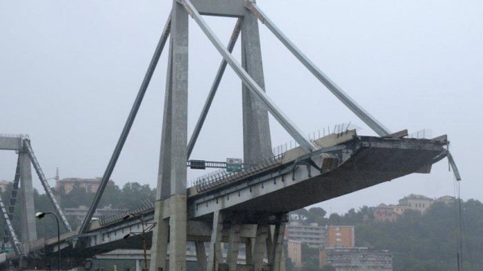 Jembatan Ponte Morandi yang terletak di jalan bebas hambatan A10, Genoa, runtuh setelah diterjang hujan badai hebat pada Selasa pukul 11.30 waktu setempat.
