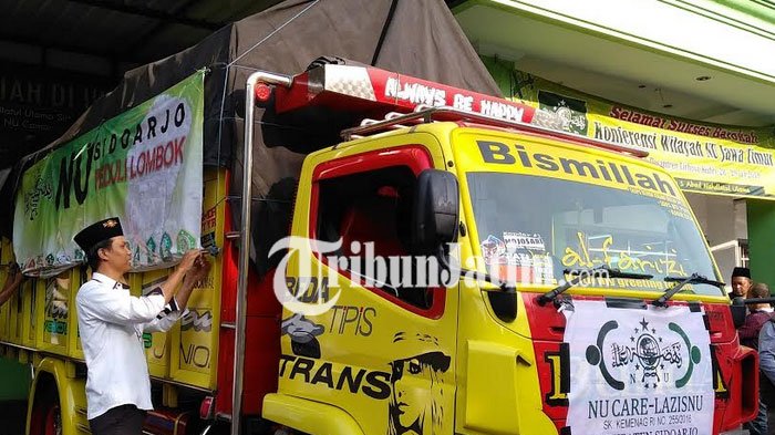 TRIBUNJATIM.COM, SIDOARJO - Pengurus Cabang Nahdlatul Ulama (PCNU) Sidoarjo kembali mengirimkan bantuan untuk korban bencana di Lombok. Satu truk bantuan diberangkatkan dari Sidoarjo, Kamis (13/9/2018).