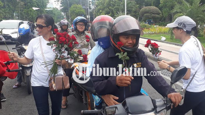 Peringati Hari AIDS Se-Dunia, TKD Jatim Bagikan Bunga Mawar ke Pengendara di Surabaya
