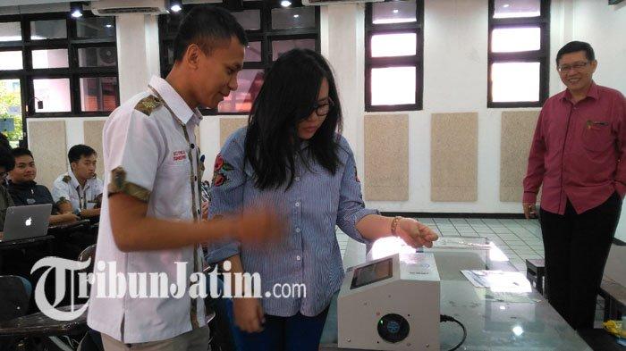 TRIBUNJATIM.COM, SURABAYA - Tabah Arivianto, Ketua Tim Era Eru Teus dari Universitas Surabaya (Ubaya) mengatakan, program Presensi Kartu Elektronik (SIKAREL) lebih ramah lingkungan dari absensi biasa yang menggunakan kertas.