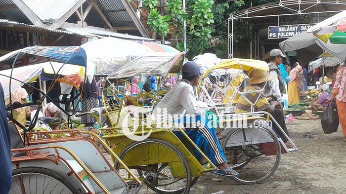 Para Tukang Becak Ini Buru Penumpang di Pasar Kolpajung Pamekasan Madura