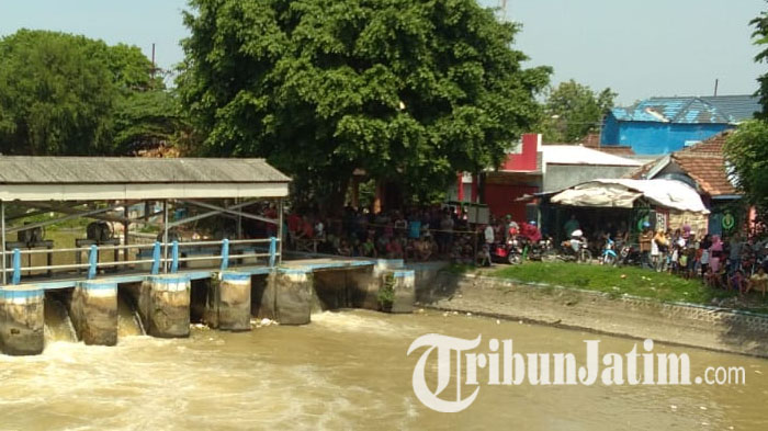 TRIBUNJATIM.COM, SIDOARJO - Warga Sidoarjo sedang dihebohkan peristiwa tenggelamnya seorang pria di Pintu Air Jabon di Desa Prambon, Kecamatan Prambon, Sidoarjo, Selasa (18/12/2018).