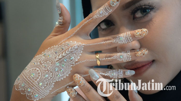 TRIBUNJATIM.COM, SURABAYA - Henna berwarna merah dan cokelat sudah biasa dikenakan oleh para pengantin perempuan.