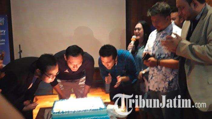 Dalam acara tersebut juga terdapat sesi pemotongan kue sebagai penanda bertambahnya usia Muda Mudi Demokrat.
