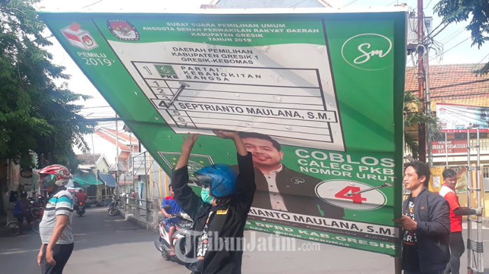 Masa kampanye hampir memasuki 5 bulan. Badan Pengawas Pemilu Kabupaten Gresik mengaku telah menertibkan ribuan alat peraga kampanye.