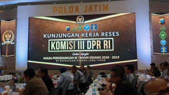 TRIBUNJATIM.COM, SURABAYA - Anggota Komisi III DPR RI melakukan kunjungan kerja di Markas Kepolisian Daerah Jawa Timur, Senin (18/2/2019).
