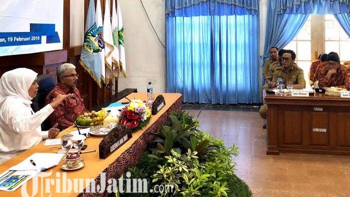 Gubernur Jawa Timur Khofifah Indar Parawansa mengumpulkan bupati se Madura dalam Rapat Koordinasi di Baperwil Pamekasan, Selasa (19/2/2019).