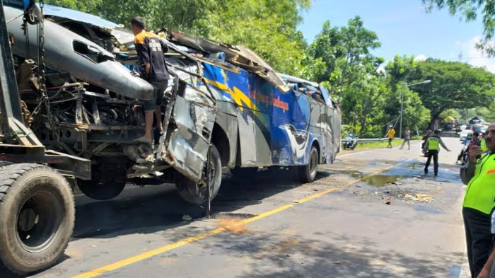 Seorang penumpang bus, Lilik Larmining (51) warga Jalan Cokroaminoto Gang Ringin, Kelurahan Kejuron Kecamatan Taman Kota Madiun, meninggal di lokasi kejadian. Korban mengalami luka benturan di kepala dan meninggal dunia di lokasi.