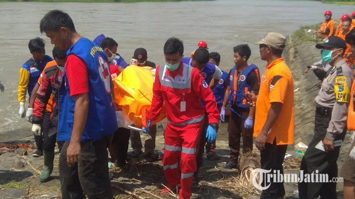 Sebab, perahu karet Basarnas tak mampu mendekati lokasi mayat lantaran arus Sungai Brantas cukup deras.