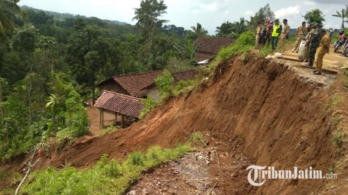 Hujan deras di wilayah Tulungagung menyebabkan longsor. Material meluncur dari ketinggian 75 meter ke arah pemukiman warga.