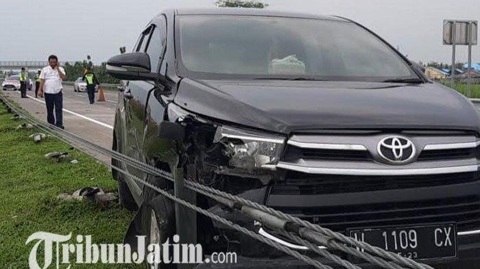 Sopir Mengantuk, Toyota Innova Hantam Kawat Pembatas Jalan Tol Jombang-Mojokerto