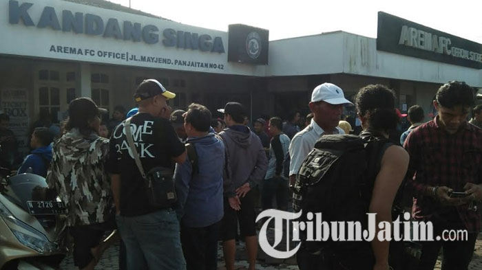 TRIBUNJATIM.COM, MALANG - Kantor Arema FC dibanjiri pembeli tiket, jelang laga penentu juara Piala Presiden 2019 antara Arema FC vs Persebaya pada leg 2 babak final, Jumat (12/4/2019) pagi.