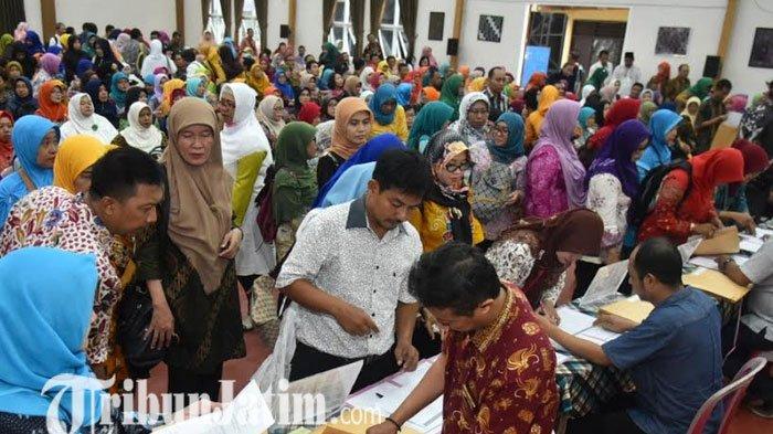 TRIBUNJATIM.COM, SURABAYA - Dinas Pendidikan (Dindik) Kota Surabaya membagikan Surat Keputusan (SK) kenaikan pangkat kepada 853 guru PNS di lingkungan Pemerintah Kota (Pemkot) Surabaya, Sabtu (13/4/2019).
