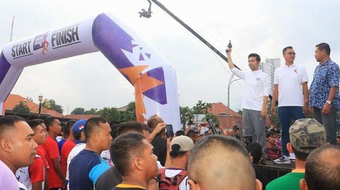 TRIBUNJATIM.COM, SURABAYA - Wakil Gubernur Jawa Timur, Emil Elestianto Dardak, memberangkatkan lomba lari bertajuk Nawa Bhakti Fun Run 10 K di depan Gedung Negara Grahadi, Jalan Gubernur Suryo, Surabaya, Minggu (28/4/2019) pagi.