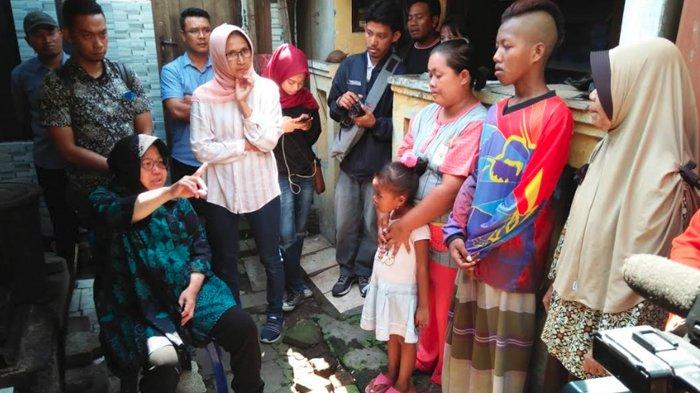 Risma disambut oleh istri almarhum, Kasianti (35) dan ketiga anaknya, Lucky Perdana (16), Fandi Bondan (12) serta Bella Putri (5).
