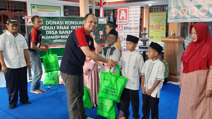 Lembaga Amil, Zakat, Infaq dan Shodaqoh Muhammadiyah (Lazismu) bersama Alfamidi menyalurkan donasi konsumen Alfamidi di Desa Banjarbendo.