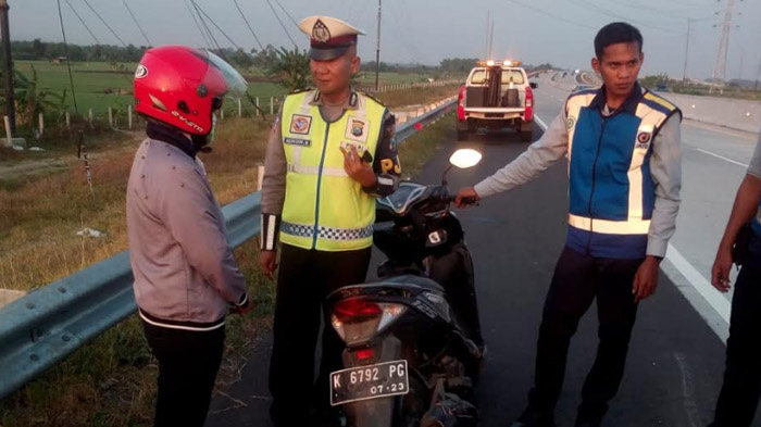 "Kejadian sekitar pukul 17.00 WIB Ada pengguna tol yang laporan, kok ada pengendara motor masuk. Terus habis itu, kami hentikan di KM 637 arah Nganjuk," kata Bambang saat dihubungi, Rabu (13/6/2019) siang.
