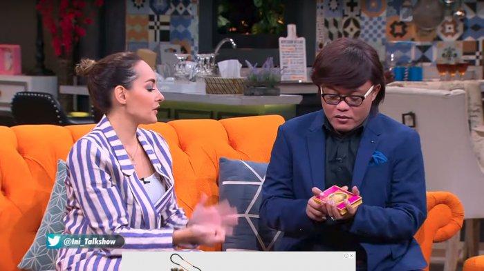 Lantas, seisi studio tertawa melihat tingkah laku kedua pembawa acara talkshow tersebut.